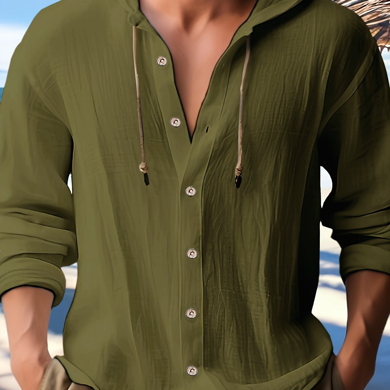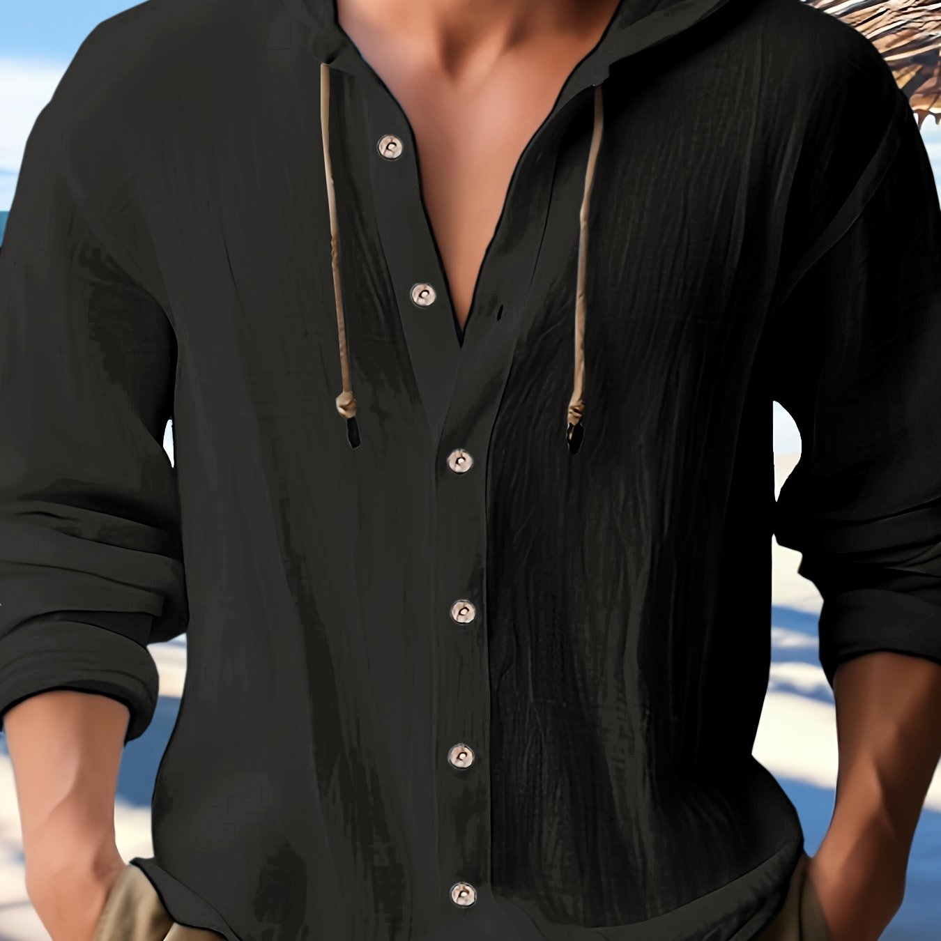 Men’s Casual Button Up Hooded Shirt, Chic Hoodie, Hawaiian Shirt