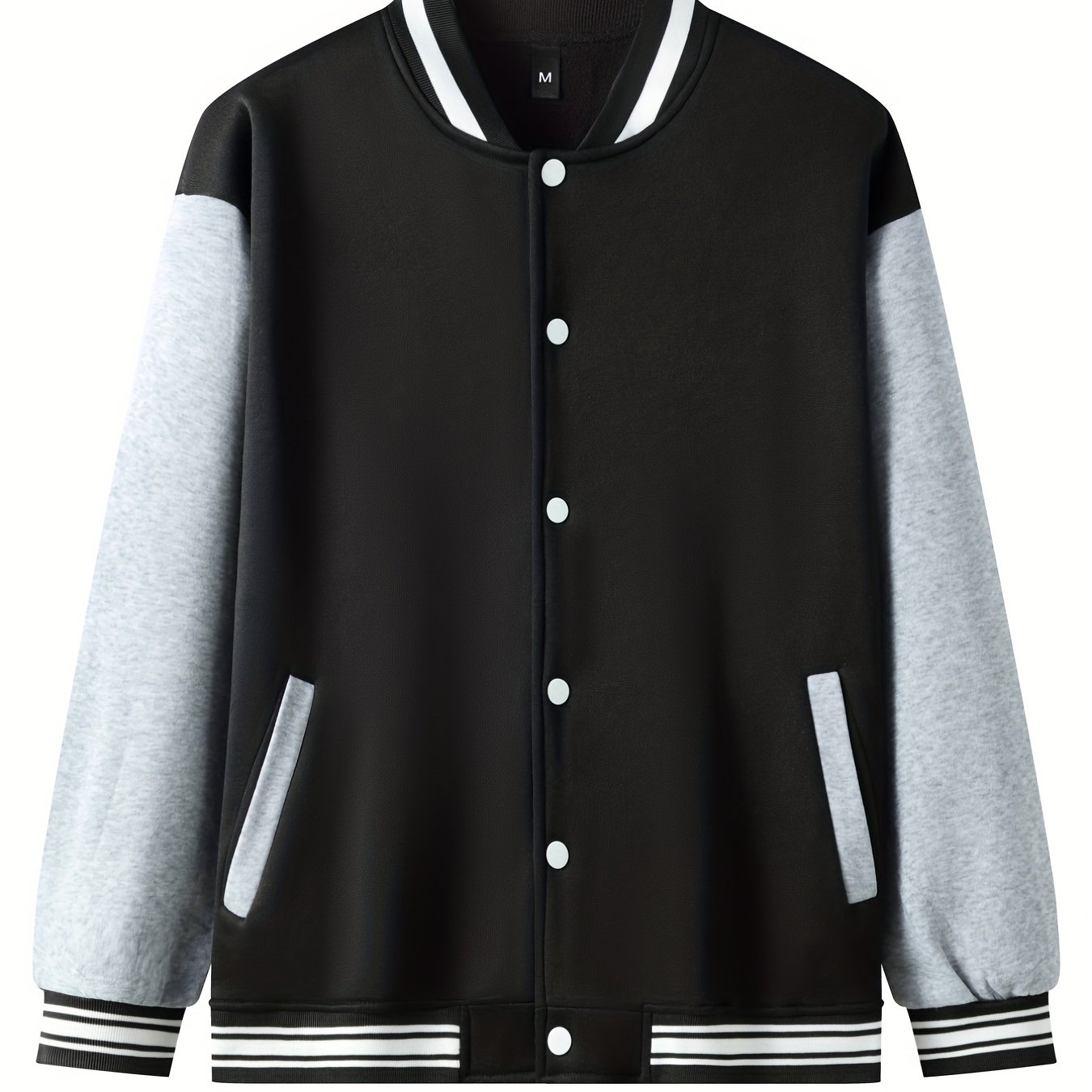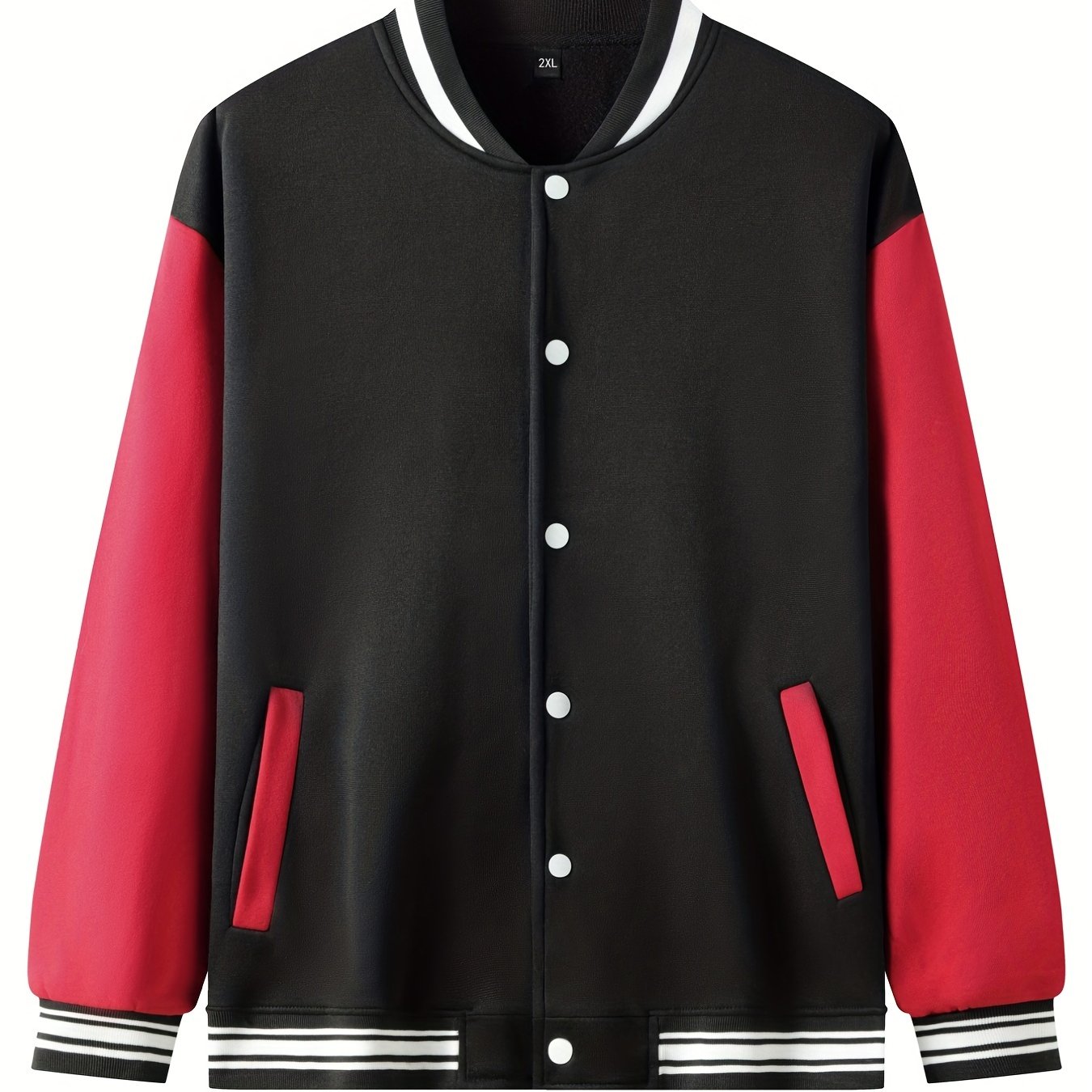 Men’s Classic Varsity Jacket – Casual Color Block Button Up for Spring and Fall