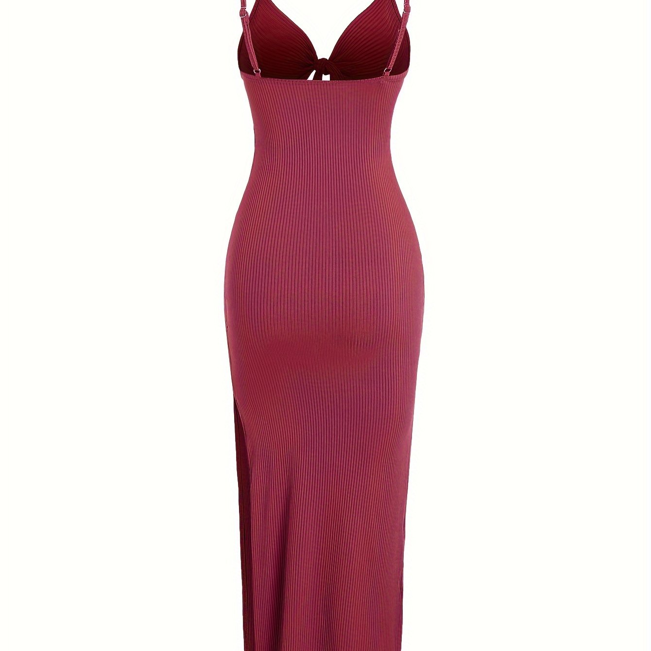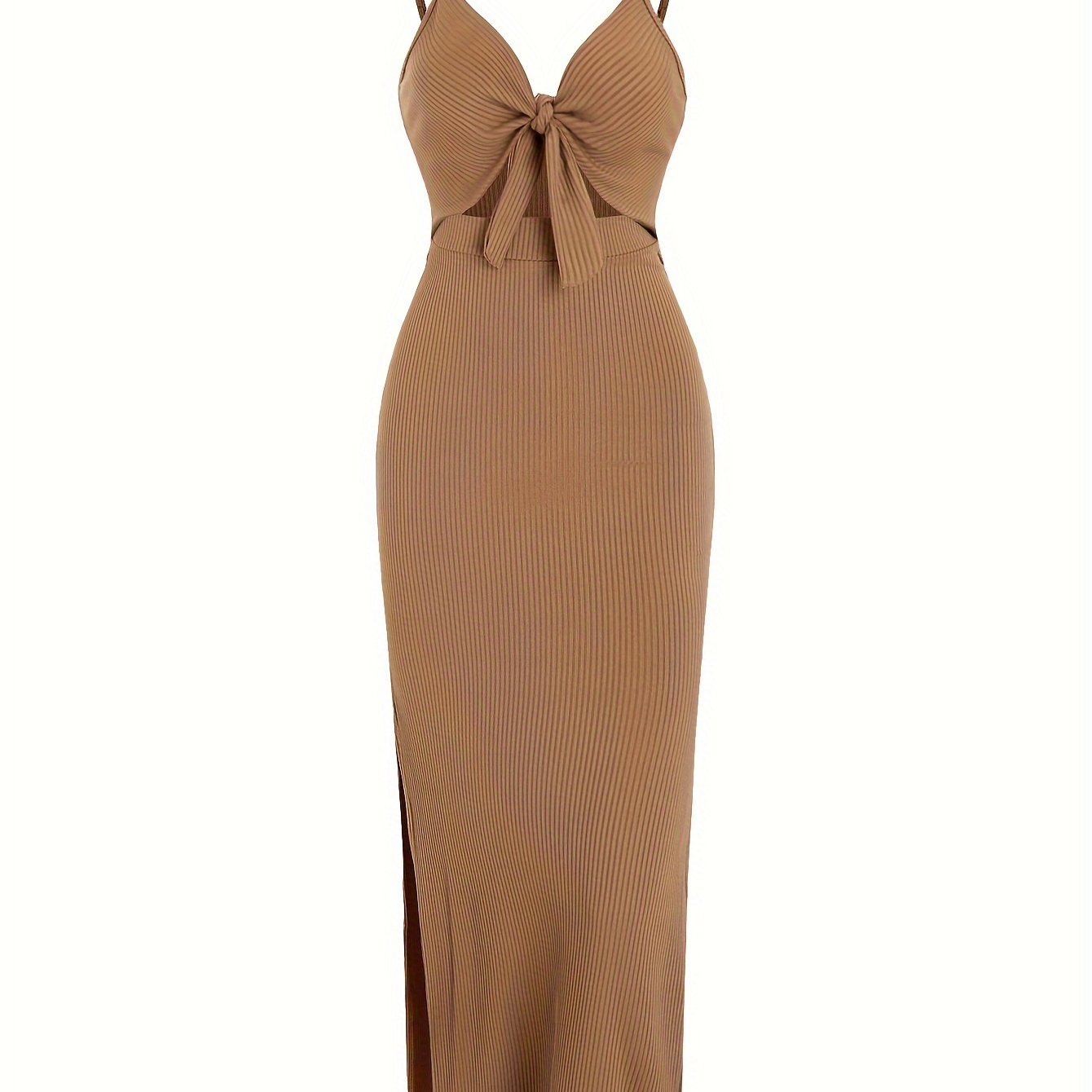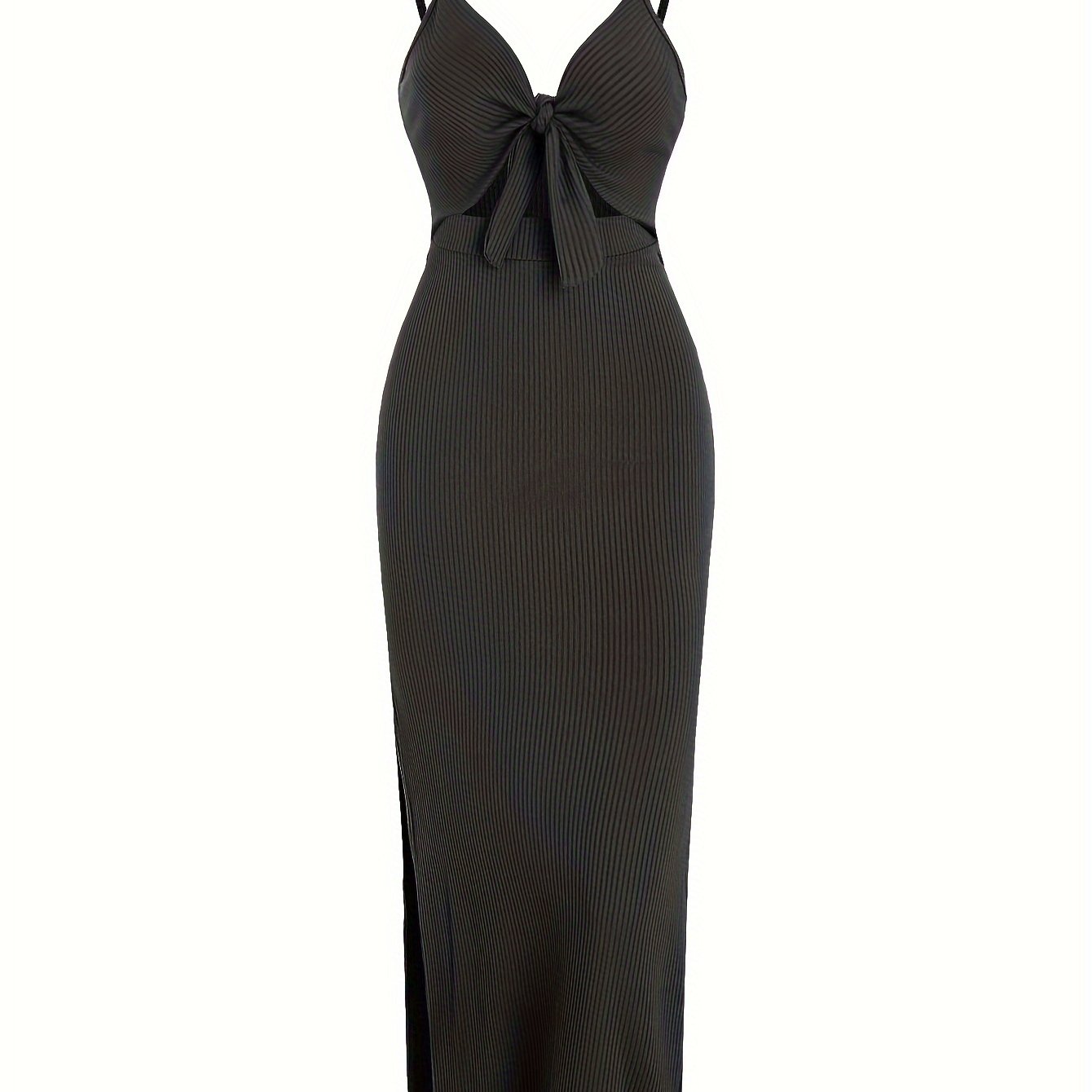 very good Sexy Spaghetti Strap Ribbed Knot Cutout Side Split Maxi Dress, Solid Body-Con Dress For Spring & Fall, Women’s Clothing – 100% recommend