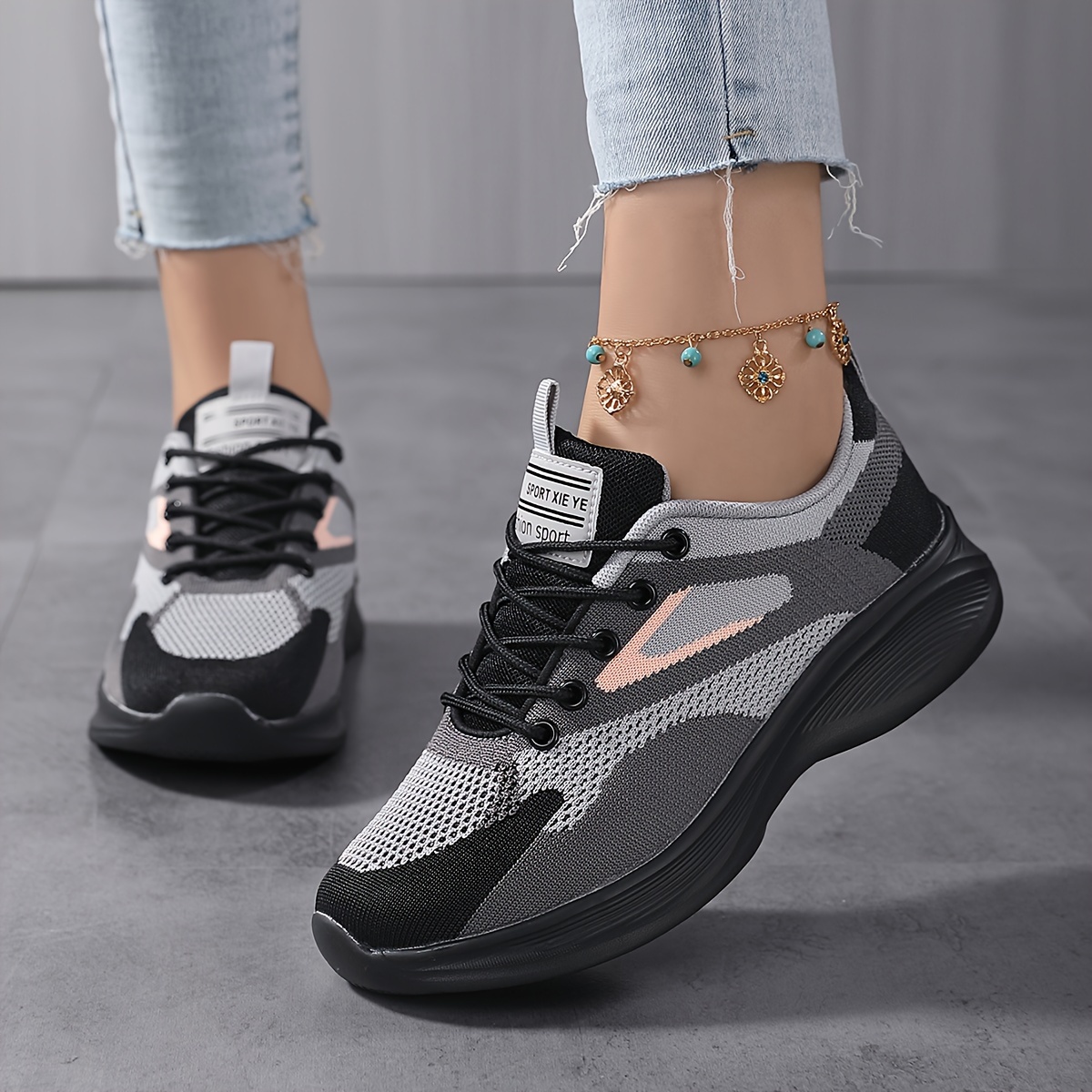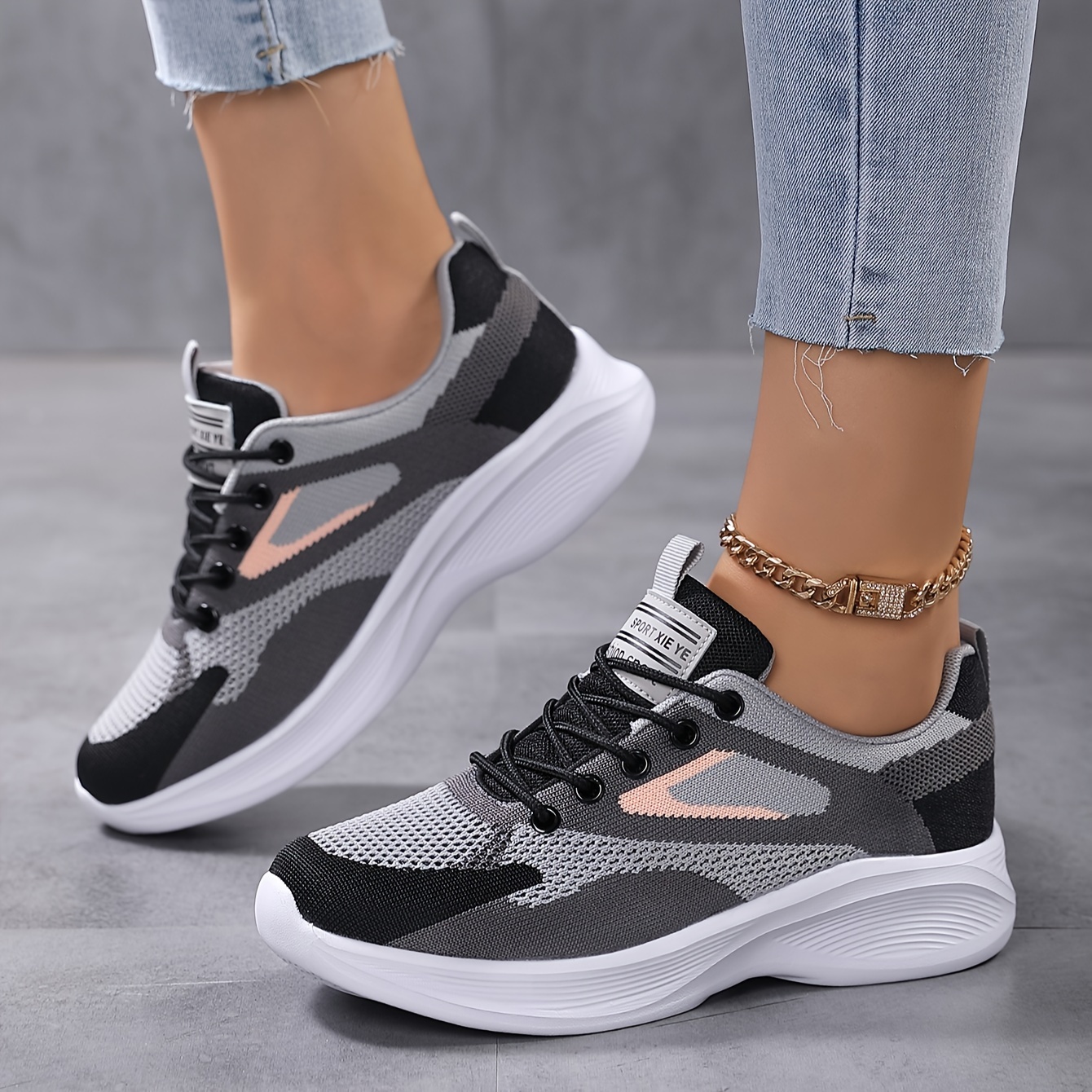 Womens Trendy Colorblock Sneakers – Lace-Up Platform Comfort Trainers – Soft Sole for Walking & Skateboarding – Low-Top, Breathable Design for All-Day Wear