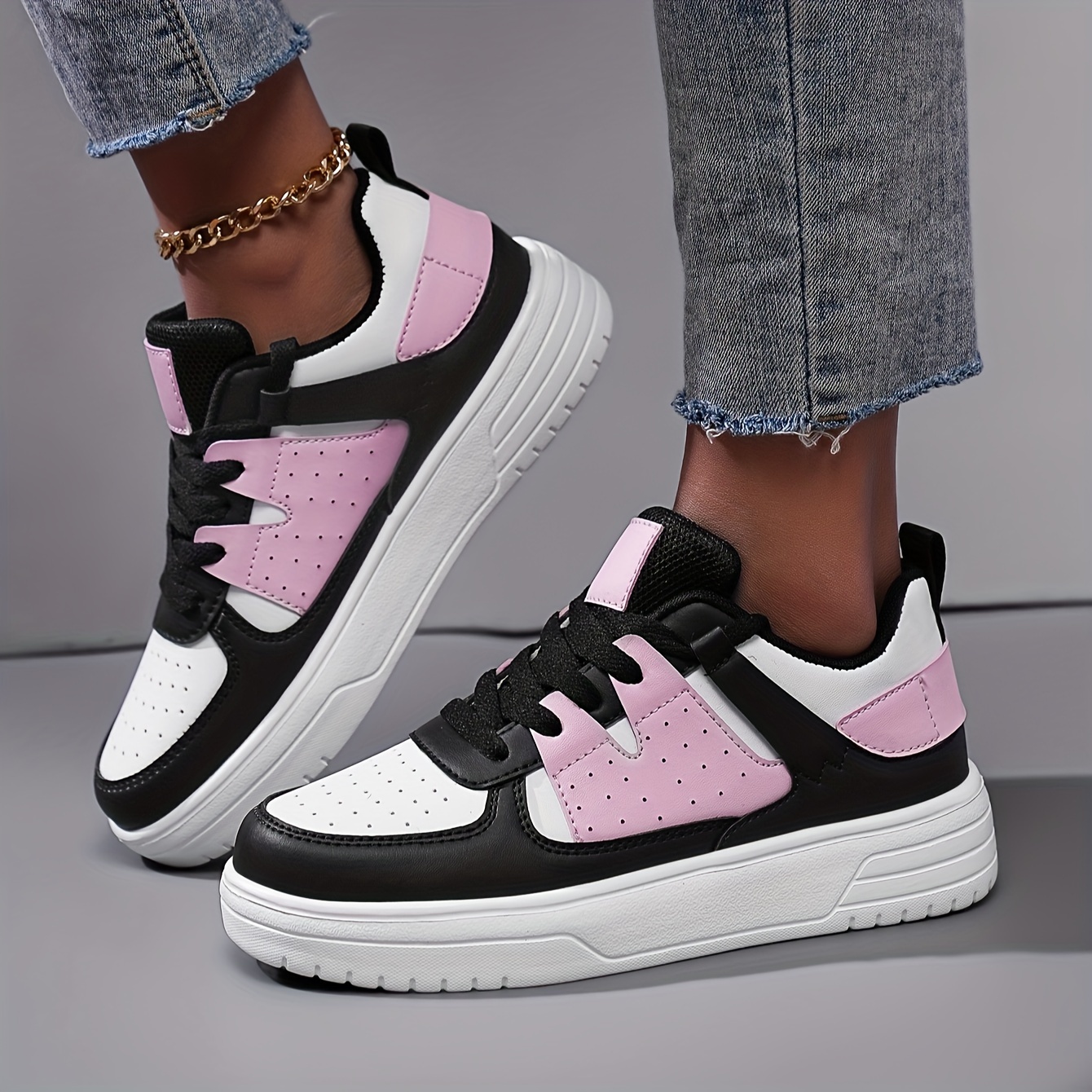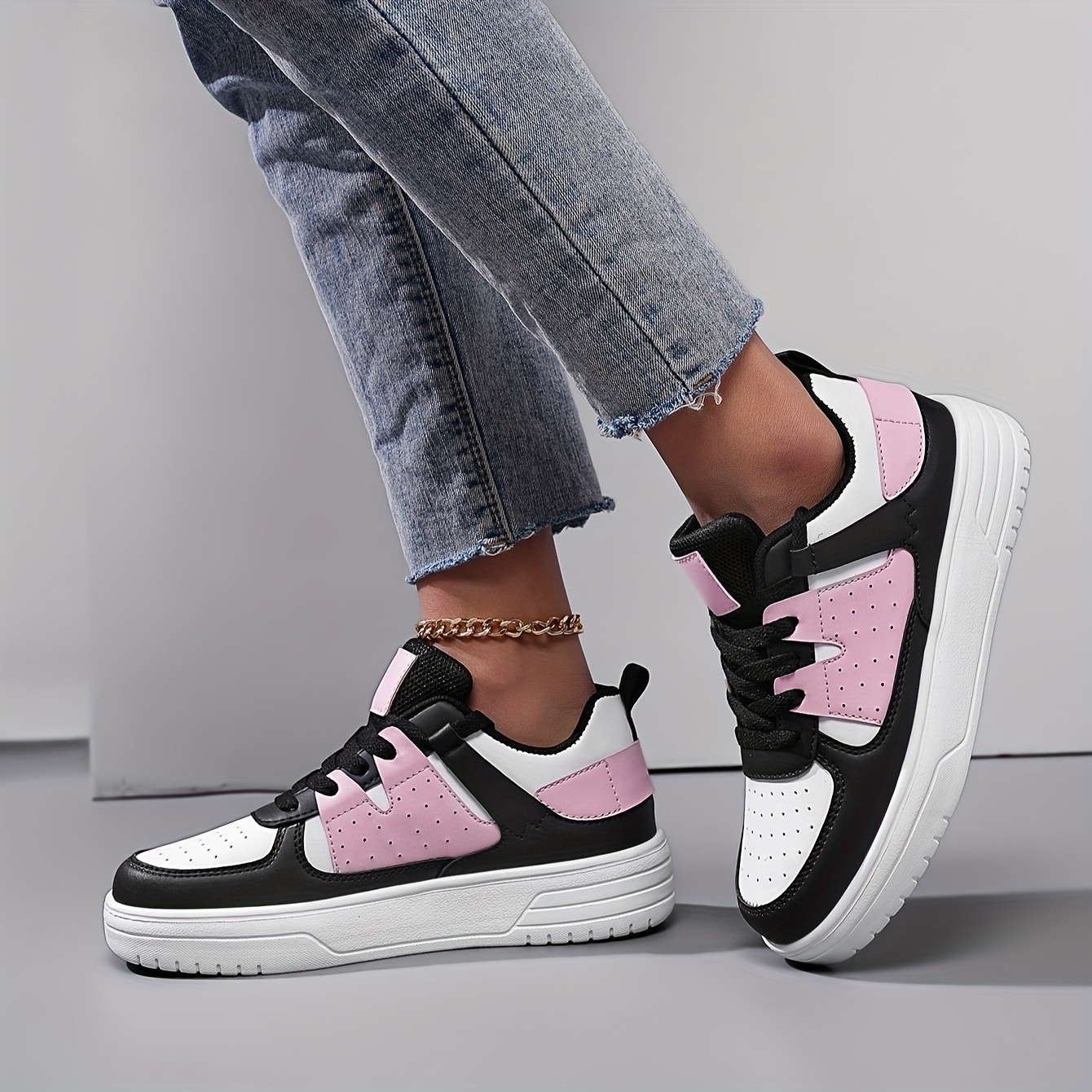 Womens Trendy Colorblock Sneakers – Lace-Up Platform Comfort Trainers – Soft Sole for Walking & Skateboarding – Low-Top, Breathable Design for All-Day Wear